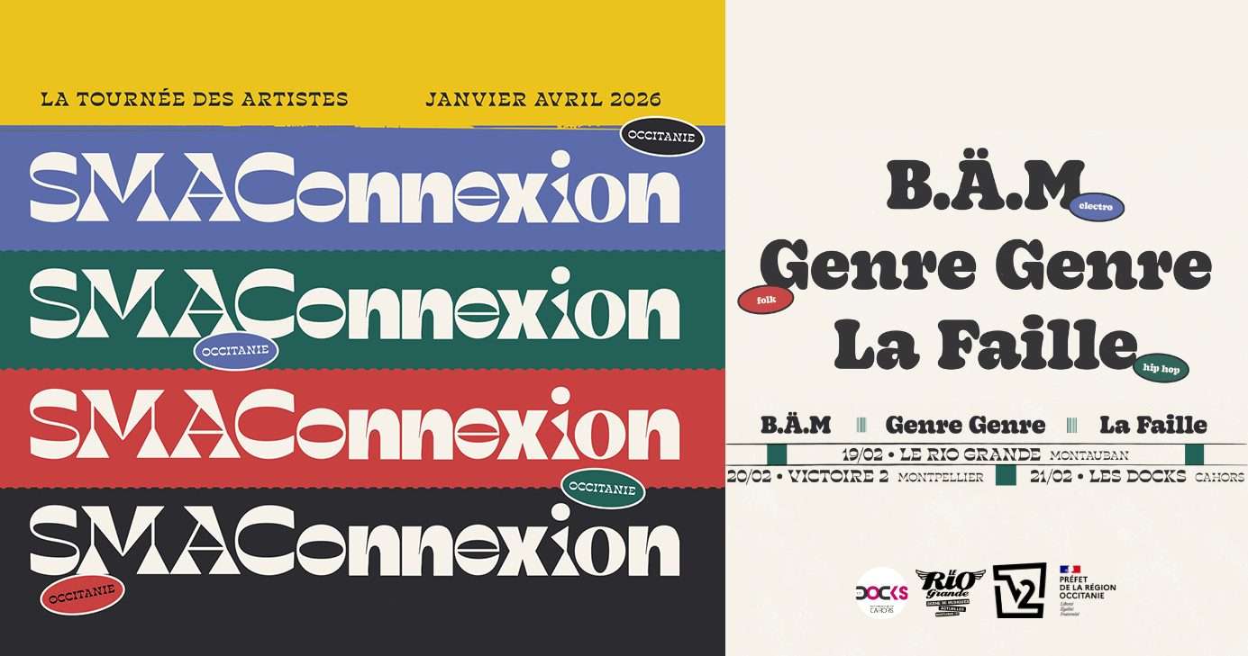 Le samedi 21 février 2026, les étudiant·es sont invité·es aux Docks pour une soirée SMAConnexion, dédiée à la découverte de la scène musicale régionale. Une programmation éclectique portée par trois groupes d’Occitanie, à découvrir sur le grand plateau pour un moment de partage et d’énergie collective.