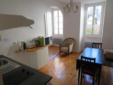 La résidence Les Chapeliers dispose de 9 studios meublés, d'une cours commune avec salon de jardin pour partager des moments ensemble, centre-ville proche de toute commodité, vue magnifique sur le château